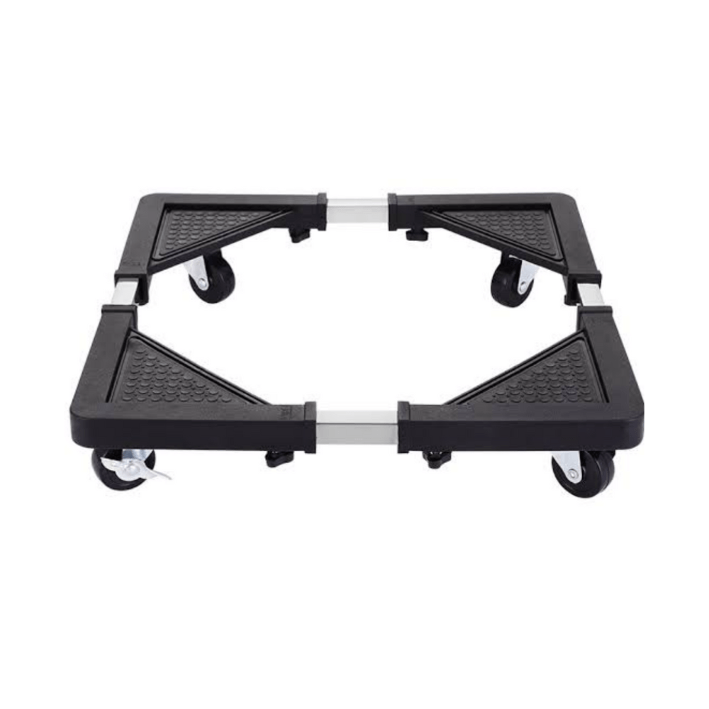 Esta base móvil sirve de ayuda para trasladar objetos pesados como una lavadora, un refrigerador, un gabinete, etc. Está hecho de un material de acero resistente y antioxidante. Además por el diseño permite la ventilación de la parte inferior de los objetos y limpiarlo fácilmente. Así como el fácil traslado por sus 4 ruedas permitiendo una distribución uniforme del peso más estable y duradera.